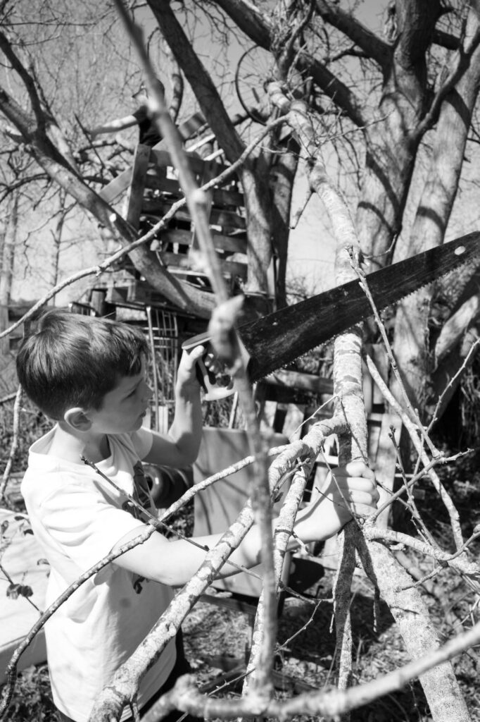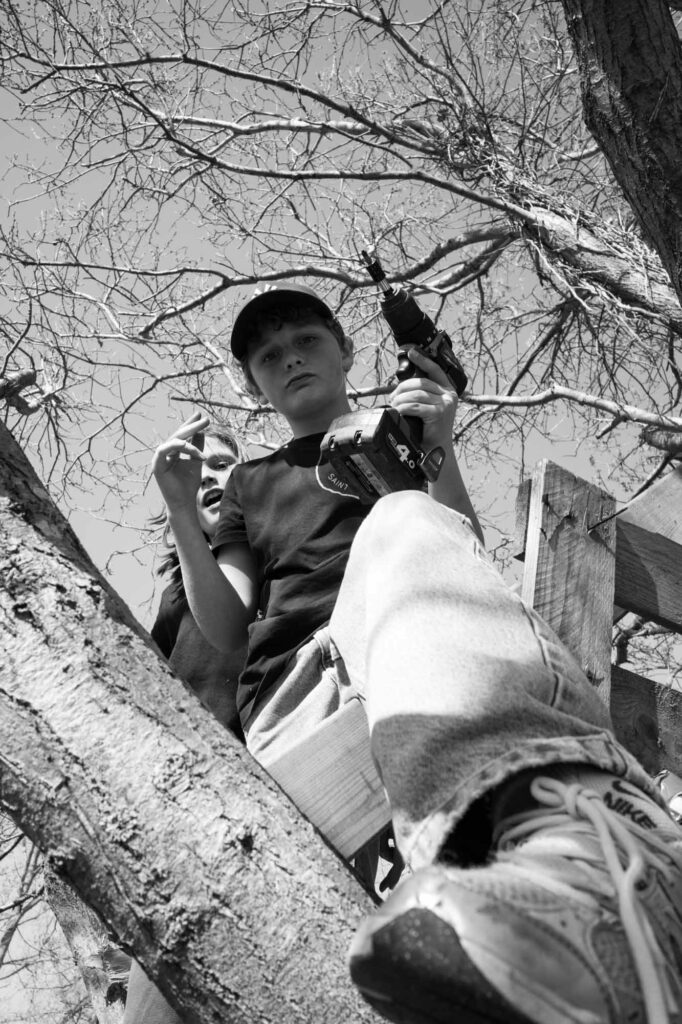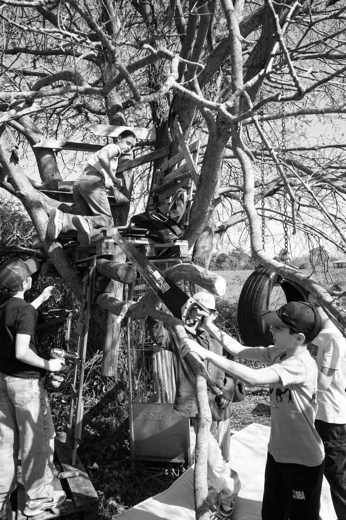 Chacun s’affaire. Le plus jeune a 8 ans, le plus grand 11. Ils sont équipés de visseuses portatives, de scies. Comme nous. En mieux. Je crois reconnaître du DEWALT.