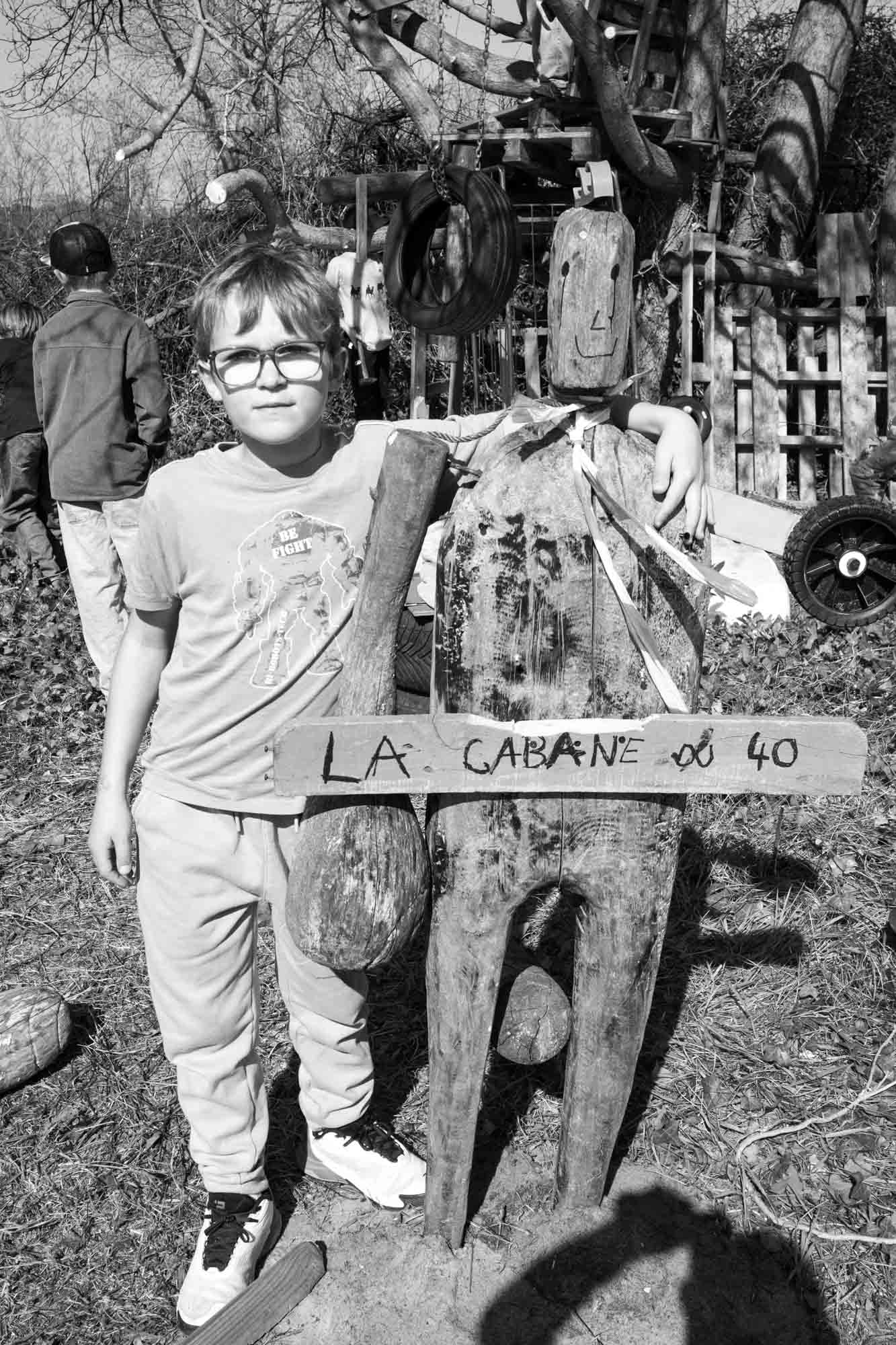 Un grand arbre esseulé. Le skatepark de Vieux-Boucau à proximité. La déchetterie et quelques habitations. C’est l’environnement de la Cabane du 40. Pour s’y rendre, on peut passer par la petite forêt si on est du coin. Sinon, il faut traverser à découvert, le grand champ. Le genre de spot de la Guerre des boutons. On s’attend presque à voir débarquer Lebrac.