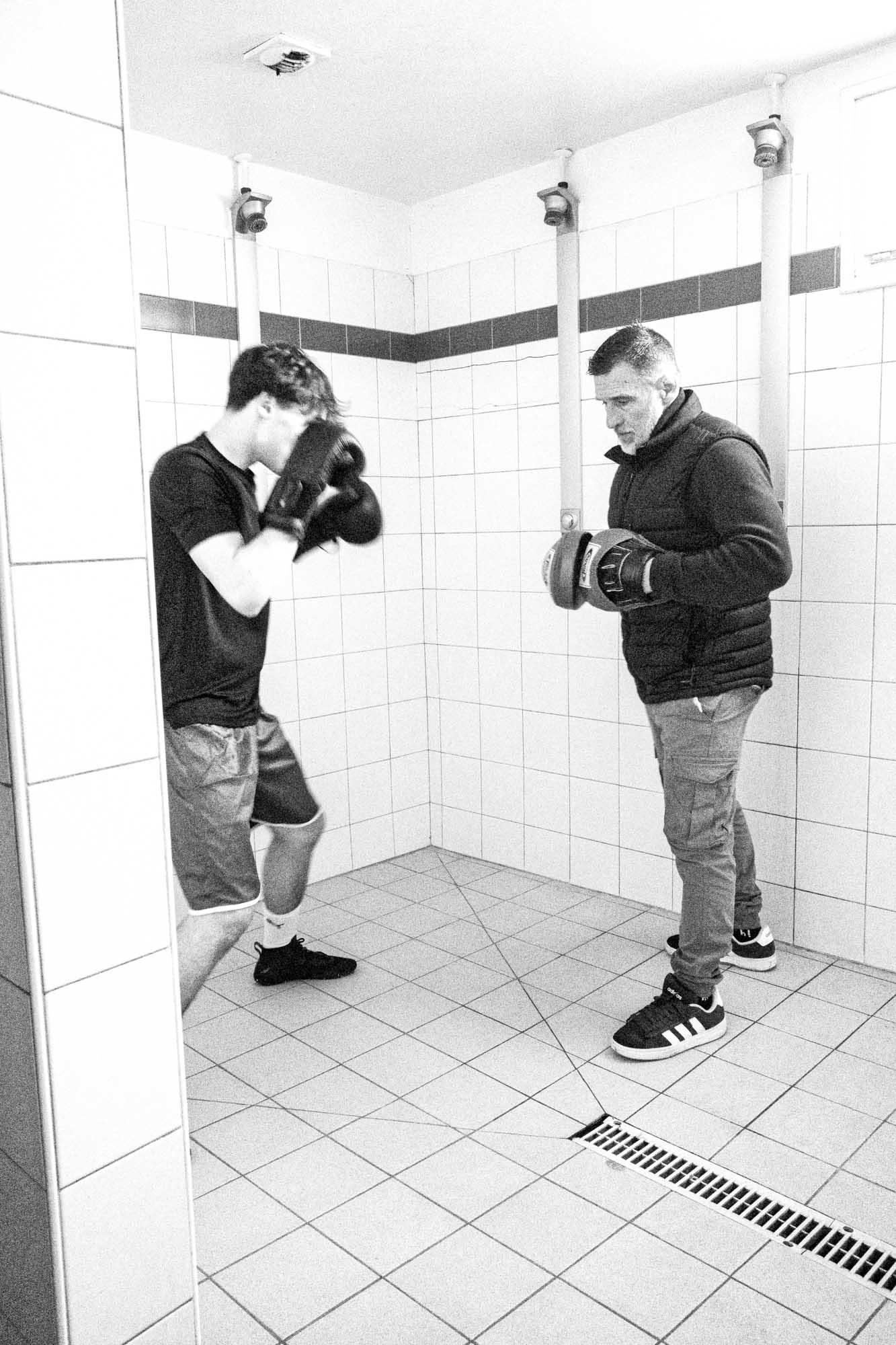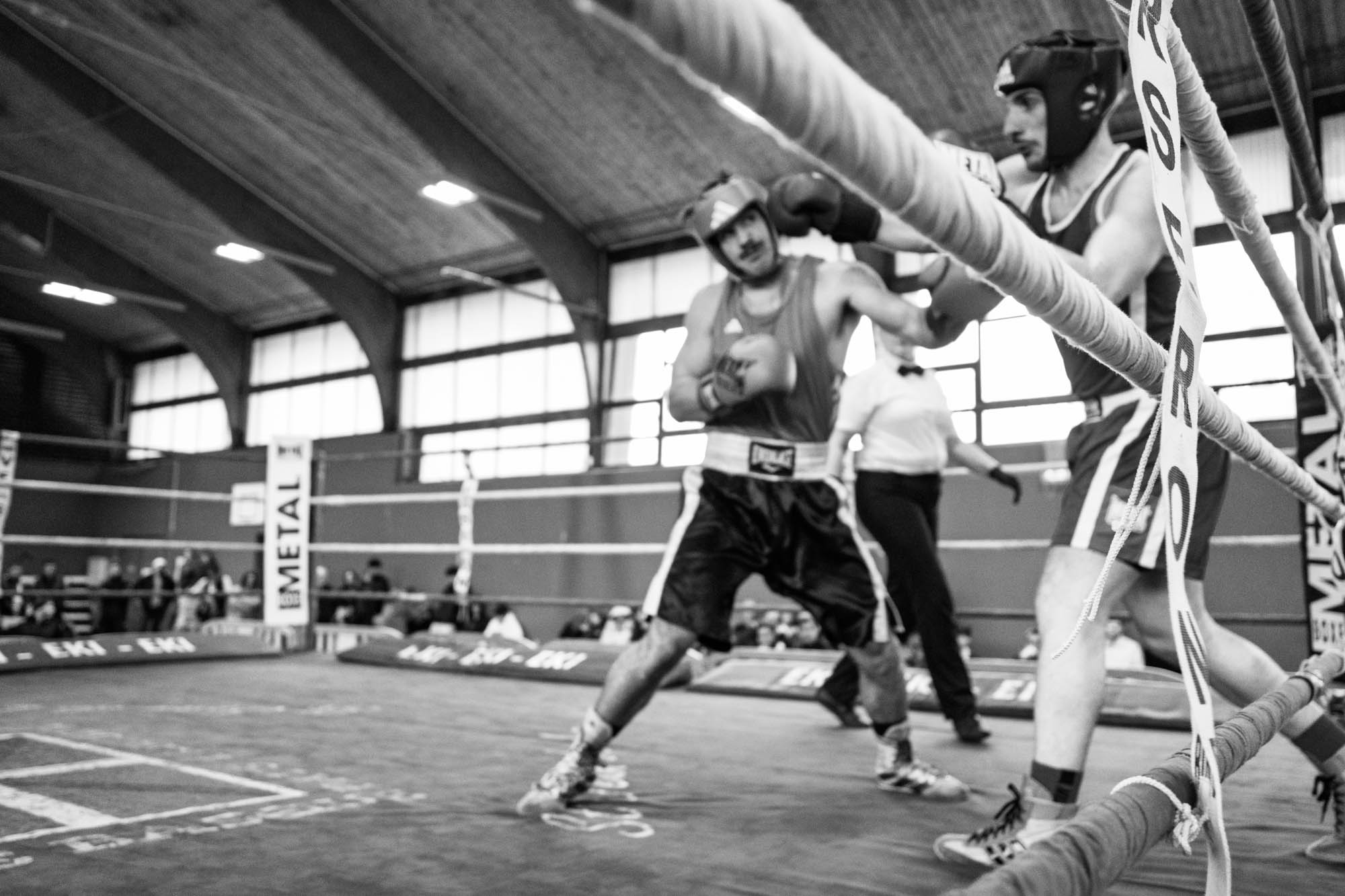 La boxe amateur, c’est le plongeon dans le grand bain. Tu passes de l’univers sécurisé de ton club dans lequel tu te mets la misère avec tes potes dans une ambiance respectable à un combat devant plusieurs centaines de personnes, un arbitre en chemise blanche et nœud papillon, des mecs aux gueules cassées partout et l’inconnu devant toi.