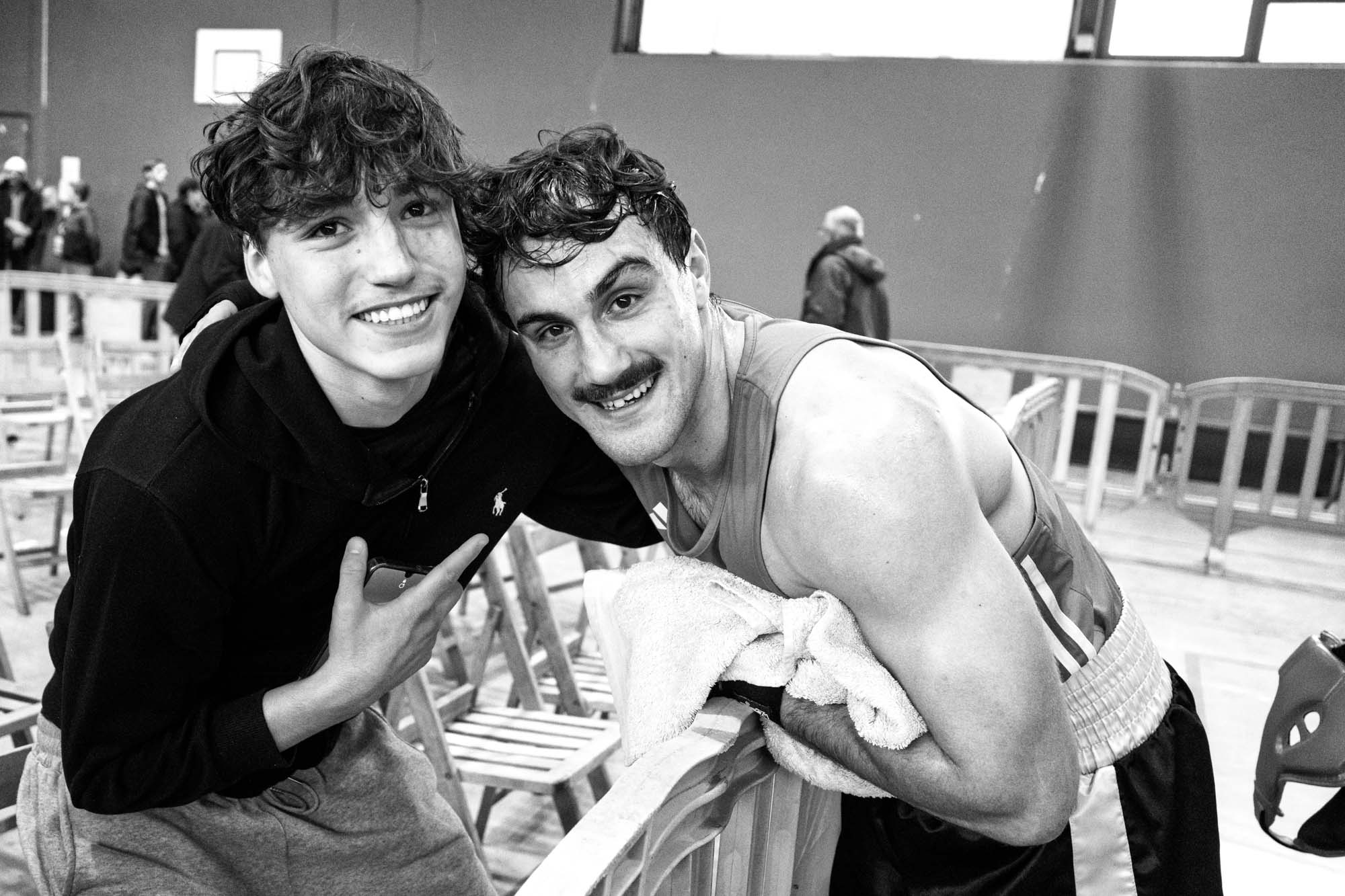 Avant de combattre, tu sais, plusieurs jours avant, qui va être ton adversaire. Enfin, tu sais juste son nom et son club. Perso, je me connais, j’irais fouiner sur Facebook ou Instagram pour voir sa gueule… Achille et Hugo, c’est pas le cas. On a affaire à deux purs sangs. Ils s’entrainent très régulièrement, ils font leur maximum dans la sueur et la douleur parfois. C’est eux qui ont raison, ça sert à rien d’aller se mettre le doute pour rien. Tu répètes tes gammes le jour J et ce qui arrive, c’est le fruit du travail que t’as fait avant, c’est tout.