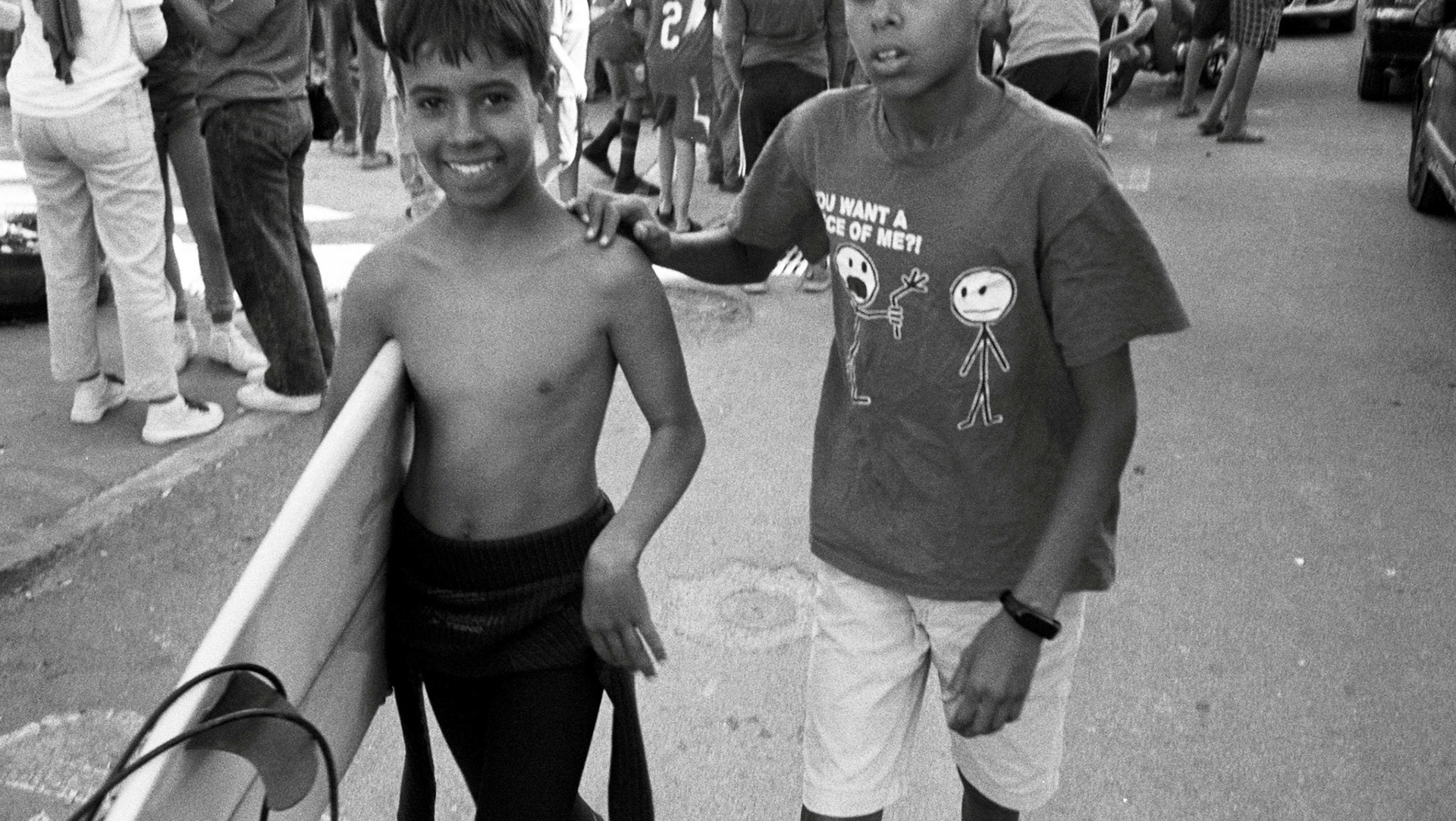 Série photo argentique sur les enfants du spot : trottoirs occupés, planches, bodyboards, baskets rincées et énergie brute d’un village où l’enfance déborde. Pas de folklore, juste des mômes qui vivent dehors et un photographe qui ramasse les preuves.